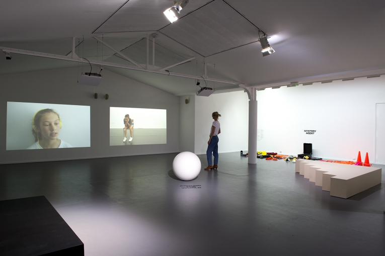 Une installation de trois projections vidéo montre deux adolescents, un garçon et une fille à la ressemblance troublante, jouant de situations réelles et chantant. Des socles bas évoquant des petites structures scéniques, côtoient des équipements de salle de gym destinés à l’échauffement du corps. Des objets, d’abord conçus pour protéger d’un danger ou pour optimiser certains exercices physiques, s’avèrent aussi susceptibles d’être utilisés de manière violente ou dangereuse. L’ambivalence de ces objets ainsi révélée renvoie aux ambiguïtés, potentiellement subversives, du langage des corps.