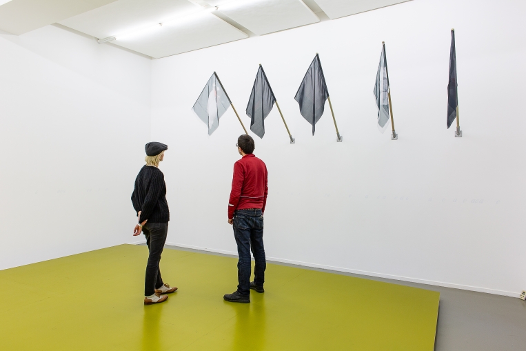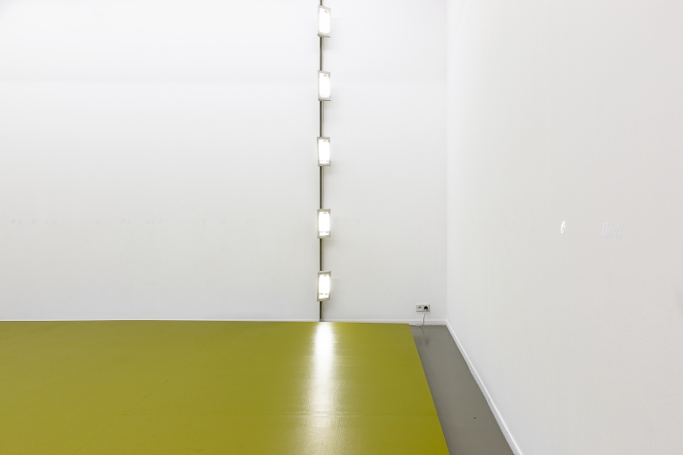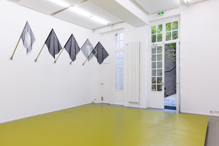 Pour son exposition au Centre culturel suisse, Passe Passe, le sol de la Pièce sur cour est occupé, dans sa quasi-intégralité, par une plateforme, une sorte de deuxième sol détaché du premier d’une vingtaine de centimètres. Le visiteur est invité à marcher sur cette surface peinte. Il expérimente alors une sensation de légère instabilité, d’oscillation subtile, de craquements à peine perceptibles…une sensation d’être peut-être ailleurs. Un ailleurs géographique et climatique, mais aussi culturel et social.